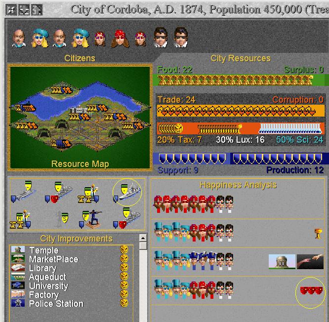 Are there hidden unhappiness factors at play here?Civ2 Demo Game #1 City-Planner, President, Historian