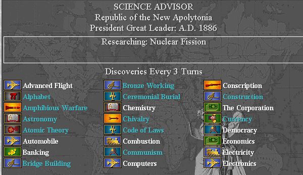 Rocketry discovered! Work begins on Mobile Warfare (other choices were recycling or guerilla warfare)