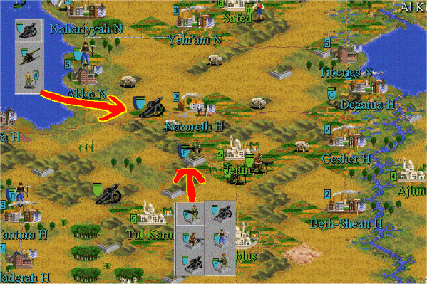 A machine gunner and palmach remain in Nazareth, the palmach can either move south to support the attack against Jenin or move east to reinforce the Golan or the river defense.
