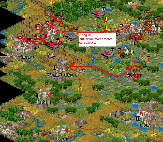For the rest, very good job, comrade Pavlov. I understand you are eager to free our Polish brothers, but we might consider first to eliminate the threat to russian cities as Gomel, Kursk, Bryansk, etc by attacking the German siuthern armies. Your colleagues at the southern fronts are having a hard time to fight of there massive hordes!