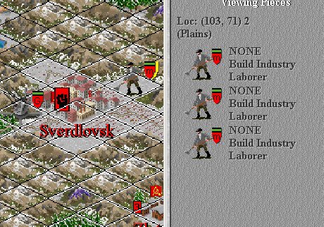 I am getting a laborer to this hex to form a new city. Notice the prime real estate with Two Bauxite Mountains and a coal mine just waiting to generate sheilds for the Rodina.