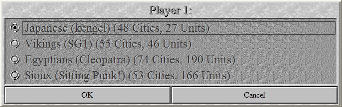 Of the four original players, three are still in the game. DaveV as the fearful Egyptians, Kengel as the mysterious Japanese and I as the humble Sioux. Crustacian, who played the mighty Vikings, left the game (and Apolyton?) without any notice. A number of players have since shown the Vikings the path to glory, and they are now ruled by La Fayette the wise.
