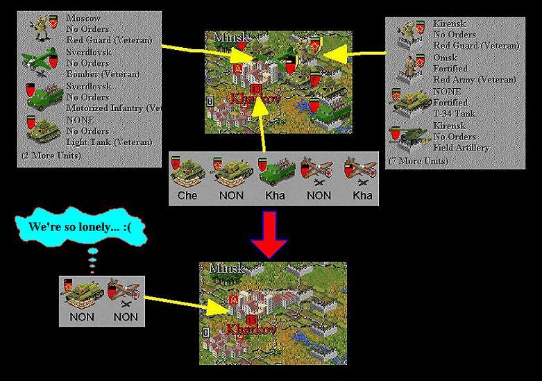 I cleverly put a ton of offensive troops there to counterattack against your counterattack, and then I come back and 24 units have vanished!!!