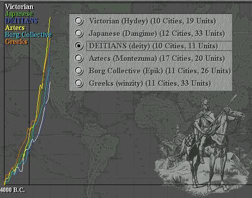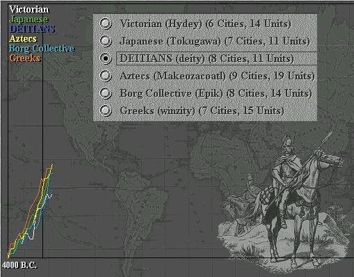 Winzity's original foe, the Aztecs, attacked in the North and several cities were captured or destroyed. The DEITIANS and Aztecs have forged a new friendship and peace agreement, sharing much knowledge about Greek defences and incompetence!