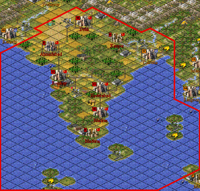 Here's my proposed boundaries for the conflict. If you're wondering why they go so far into sea, it's because American ships shouldn't be able to just sit off India and be impossible to sink due to the boundaries. Frankly, I think any enemy ships in the Indian Ocean should be fair game.