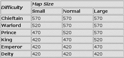 Below deity the different map sizes (small,medium and large) have different amounts of turns.The bigger the map the more turns there are.