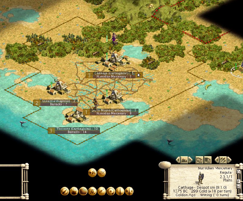 No Great Library. OUCH. So yeah, I'm a little behind in tech. Plus, I know just about everyone else now, meaning I had to declare war on all of them. I couldn't afford to even buy any tech.