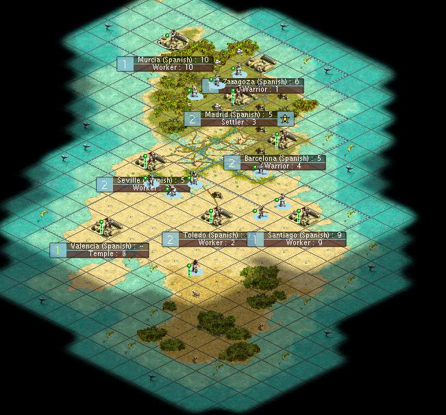 . I now have 2 workers; I use one for irrigating/connecting cities, and I use the other for clearing jungle/mining. I hope to have more soon, as Spainard workers don't tend to move very quickly.