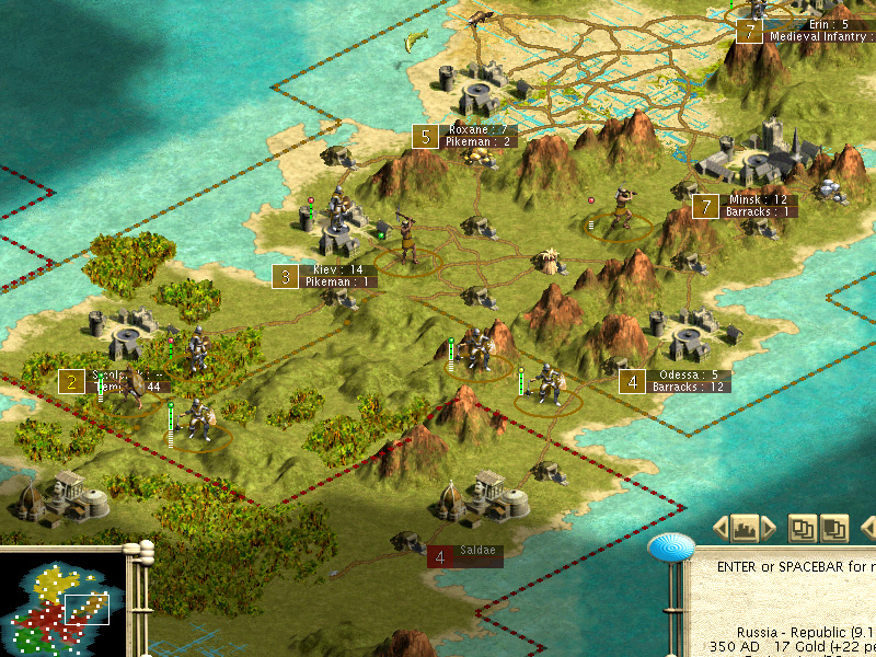 In 510 BC we founded Sevastopol (7th!), right on our only Iron resource. Catherine suddenly became very interested in bright, shiny iron swords…