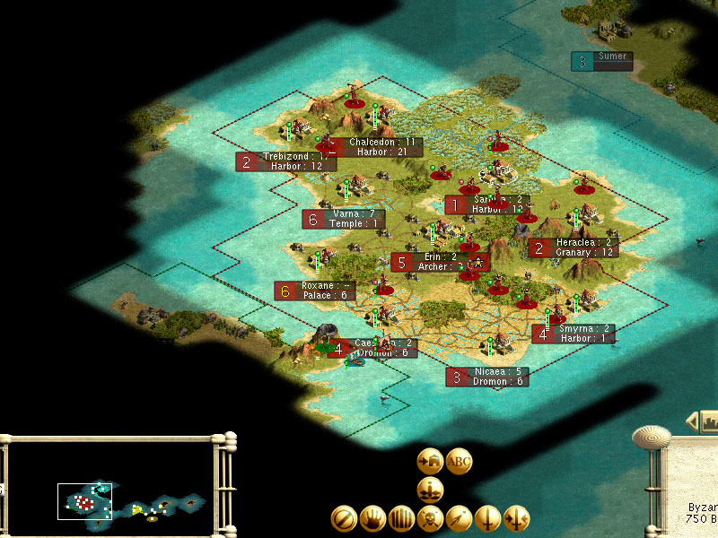 1790BC: City of Heraclea founded on the coastal hill on the far east side of the island. It's worth mentioning that a while back I chose to make a bee-line for Philosophy rather than researching MM directly. I figure that I can probably trade Phil for it, and worst case I'll use the free tech to get MM. I'm currently 25 turns from Phil at (obviously) max feasible research.