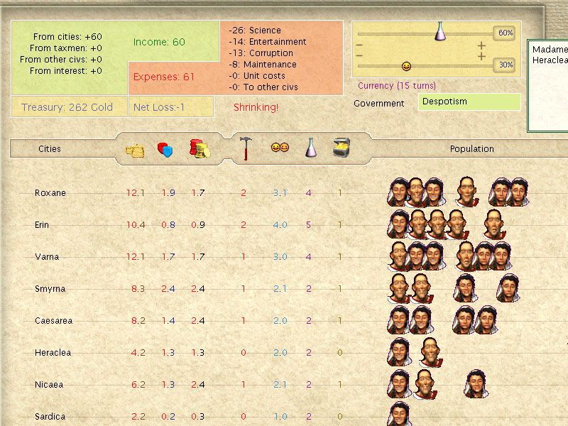 1830BC: Woo-hoo. I make contact with Sumeria, and trade writing to Gilgamesh for Mysticism, Masonry, Warrior Code and 10 measly gold. I then trade writing to Japan for The Wheel and 3g.