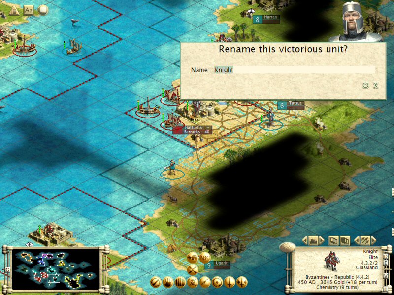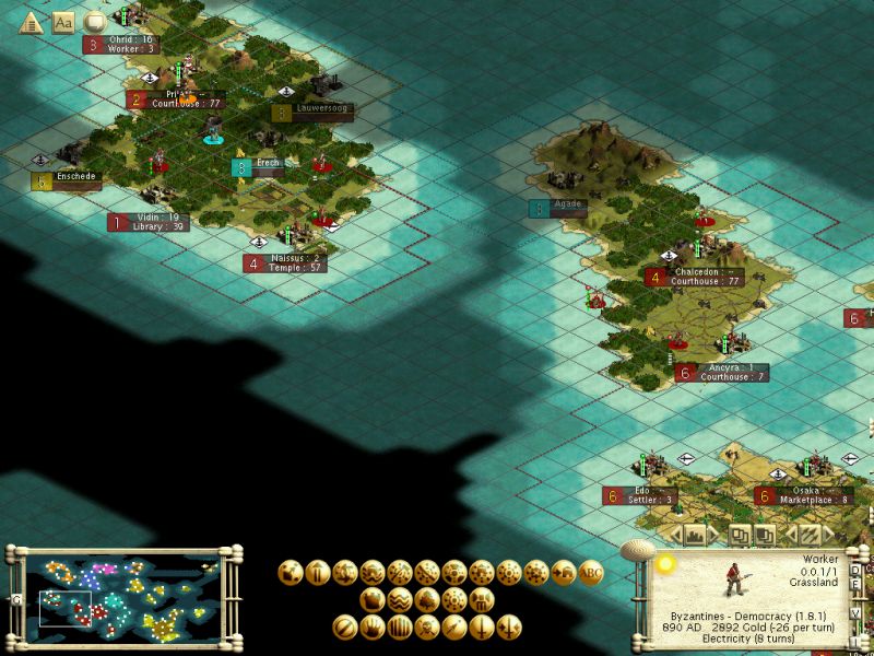 ) and one city on the farther island. At the close of my Sumerian conquest I had taken their homeland and the closer island, but didn't have enough units on the far island to take their cities (and war weariness had started setting in causing me to have to use the slider and lose gold) so I offered them peace and grabbed two of their remaining three cities in the peace deal. So I finish researching steam power and the only coal within distance of me is IN THE BORDERS OF THE ONE REMAINING SUMERIAN CITY!