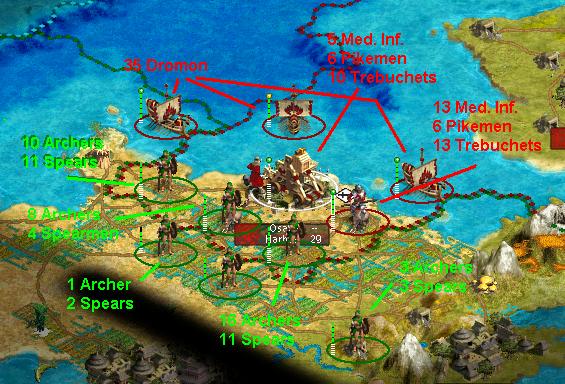 1110 AD: Zabalam captured; peace with Sumeria for peace, 8gpt; Hittites invade western island (using 1 longbowman)