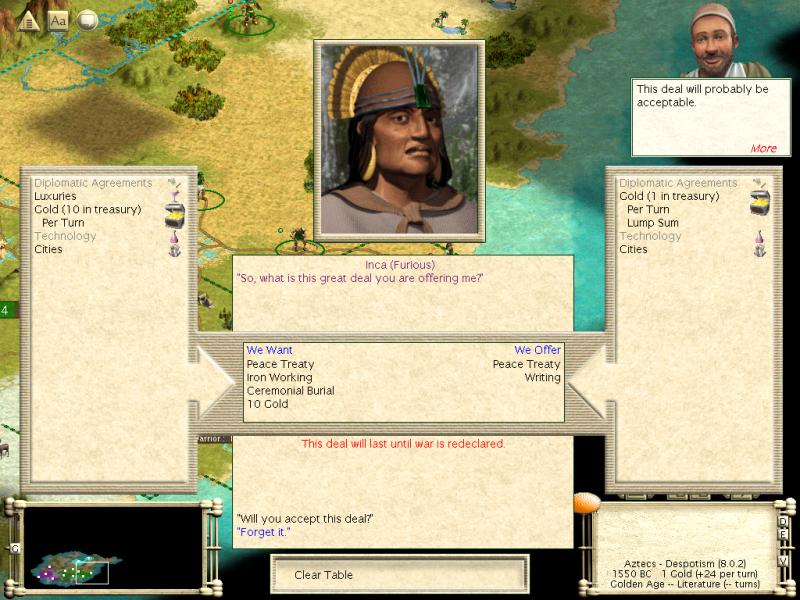 In case anyone else wants to give it a try (at least far enough to see how the Jaguar Warrior works out), I'm posting a test game I started to see how good a use I could make of Jaguar Warriors. It's on a standard map with eight civs, Emperor level, and using the standard rules rather than the AU Mod. The challenge: how much value can you get out of your Jaguar warriors, and at what cost to your REXing? I'll be interested to see whether, if several people try this, the Jaguar Warrior works consistently well or whether some players end up having their attempt to use their Jags backfire. Note that we've had some discussion regarding how to get the most out of Jags in the thread on that unit, and I'm sure there's been a good bit of other discussion (albeit at least mostly based on the earlier 10-shield version) elsewhere on Apolyton.