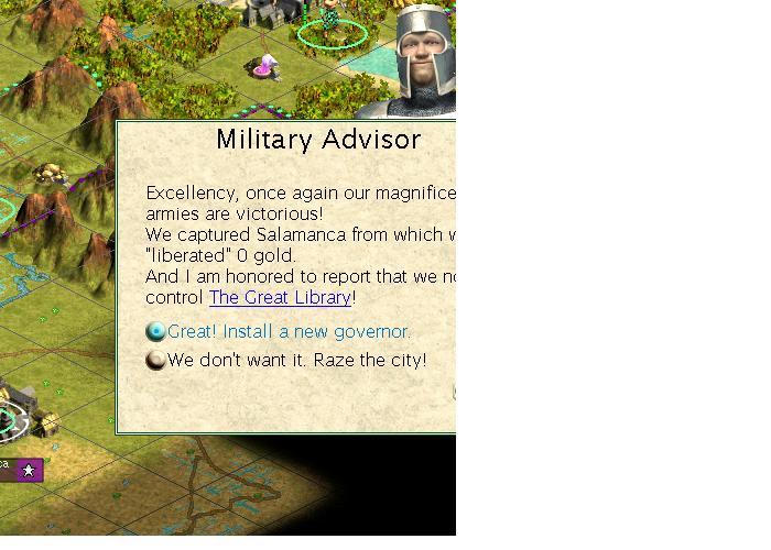 The Sumerians had succeeded in recapturing the city the Iroquois had taken from them earlier, and had the Great Wall as well as the Statue of Zeus to enhance their military status. They also had the Great Library, and so could be an extremely valuable target to attack – if I could do it successfully.