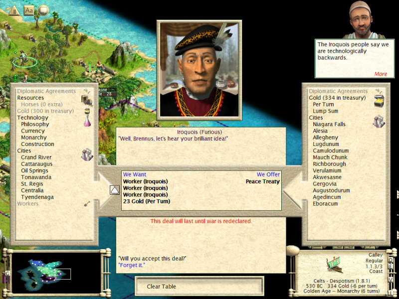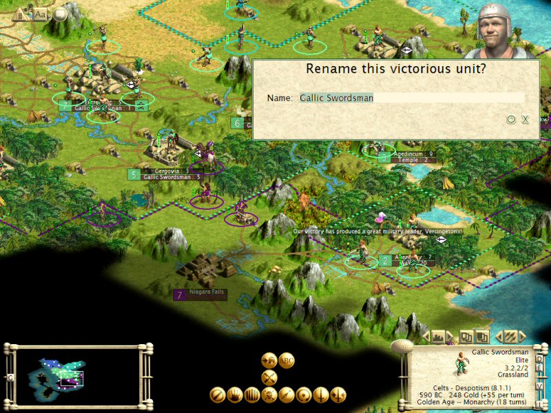 Unfortunately for me they lost to a Gallic Swordsman and started my golden age. It wasn't too bad since I had a lot of one-shield tiles that got boosted, but I was still hoping to wait for monarchy before starting the GA. Oh well.