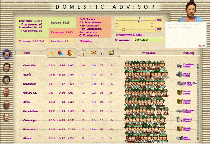 The expanding army was starting to hurt the economy as 7 GS patrolled the Northern border. However these 7 were not nearly as significant as the 23 that had taken position on the Southern border. In 10 AD the Celtics new plan OWMEX (overwhelming military expansion) began. The Celtic Empire entered a Golden Age as 3 cities were liberated by the powerful GS army in the opening move of the war.