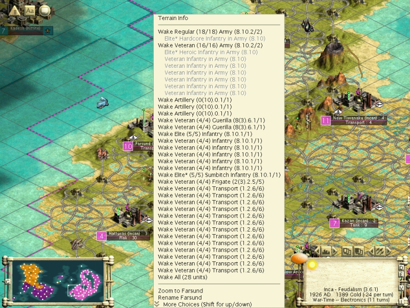 [Editorial note, to be re-visited in the appropriate threads: I think the AU Mod needs some tweaking in terms of modern naval movement… Battleships and Carriers are particularly annoying, and I ended up really just focused on Cruisers to match Transports at 6 moves, and Destroyers as wolfpacks/coastal bombardiers.]The greatest delight for man is to inflict defeat on his enemies, to drive them before him, to see those dear to them with their faces bathed in tears, to bestride their horses, to crush in his arms their daughters and wives.