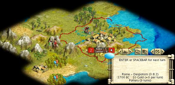 We plan to build a couple of Warriors to explore, and then a Settler. The second city will pump military units while Rome will start on a Granary. That's the plan for now anyway...