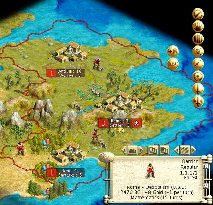 Also, Veii now has shield production of 3, so it's no longer efficient to produce Warriors. A 20-shield barracks will fit nicely to produce some veteran Archers though.