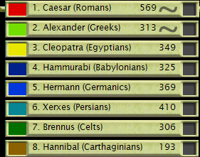 ... most hate me. persians, greeks, germans and carthagians all felt my wrath, so at best i could get 4 votes. but cleo is a bit self confident