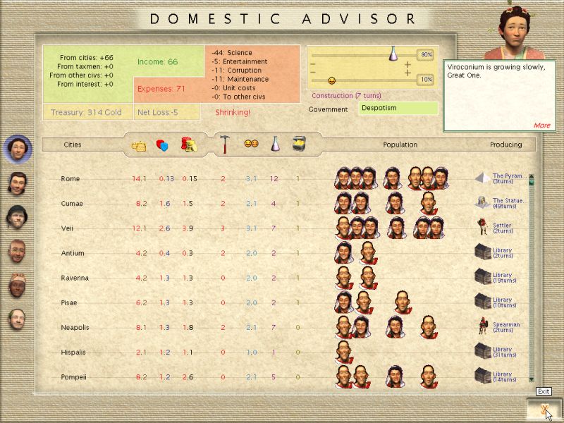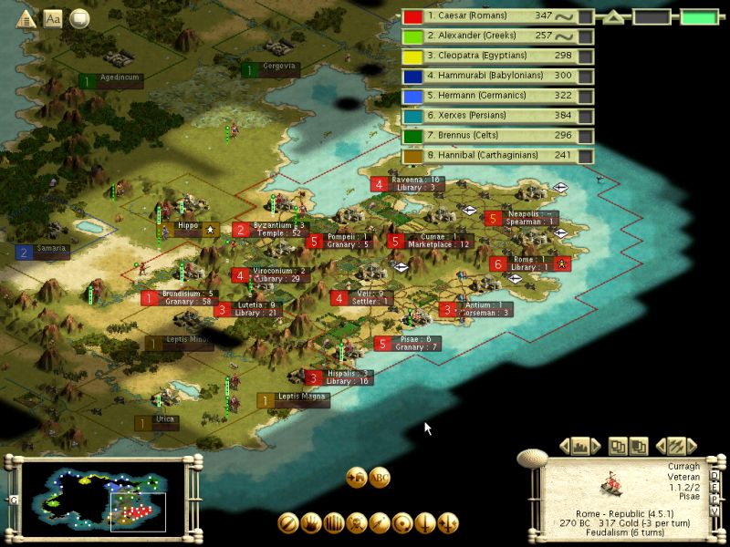 We made it to 690BC, so I'll post all that happened here......not much, since we're both the peaceful friendly tpyes, not like Dom and Krill