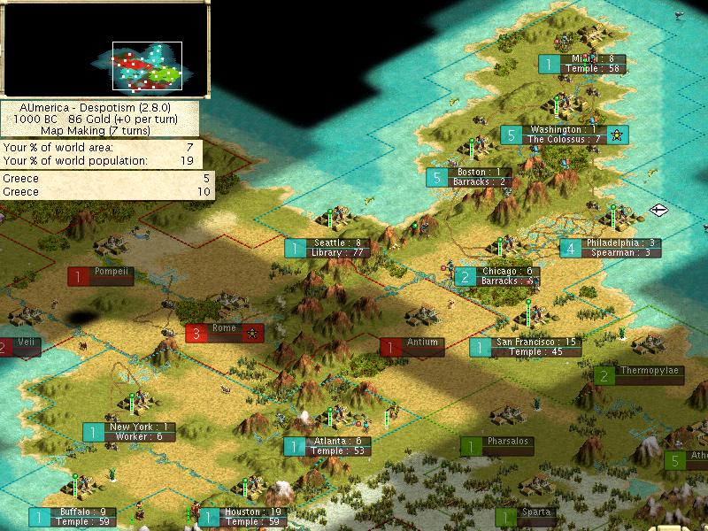 Since I fear a Roman attack ( a Roman archer is walking near my cities...) I built a couple of Swordmen (now my military is average compared to other civs).