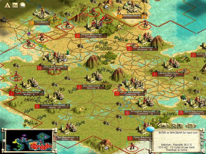 • Babylon can do 15spt, if you try a bit harder (has 14spt now). That's a Pikeman every 2 turns... Or a Horseman, for future upgrades... Yes, you do have a second Barracks city.