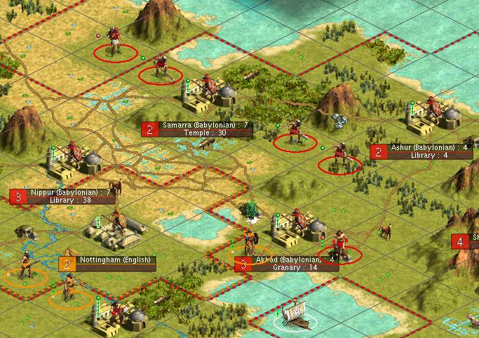 Ur builds great library. Curragheous survives barb trireme attack. Settler from Ellipi to...Nott 12 (on river , lots BG). I'm building military in babylon and nineveh to clear the NE part of our continent and settle it before someone else does.