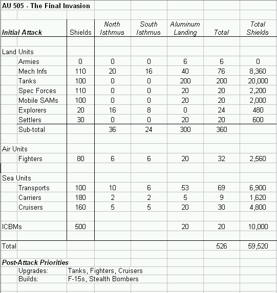 So, on to planning a truly massive late-game (but un-upgraded) invasion: