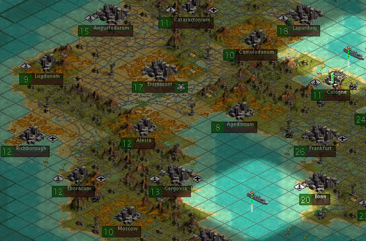 And that was, obviously, the beginning of the end for the Celts. It took a lot longer than it should have, however, as I stupidly kept nuking their heartland, at one point blocked my 'wheeled' MAs from getting over their mountains. Thus it took me waaaay to long to get this far: