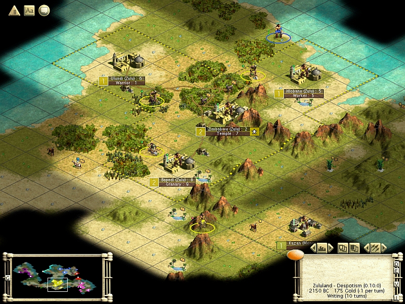No warfare yet. With horses nearby, plan to go for Monarchy, and have a mixed Horsemen / Impi force out and about, with the Mongols (and thus the ivory) first on the list.