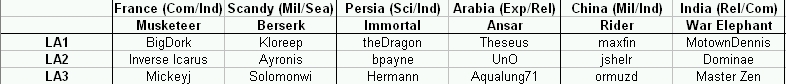 Shoot, sorry, I take that back, I already had Aqua in one of the LA games... still need a new sign-up, or one of the FFA players to volunteer for LA.