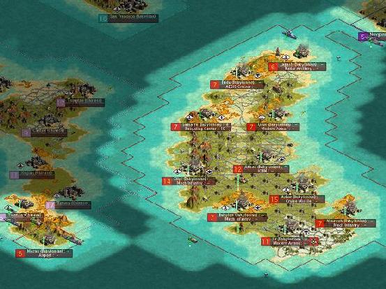 In 1758 Babylon entered the modern era, still ranked last on the histograph despite Russia’s demise, but already up to second in manufactured goods. Its cities pumped out tanks that would later be upgraded to modern armor. They neglected air units, which would be postponed in a calculated risk until the advent of stealth technology. And in perhaps the biggest risk of all, Babylon’s hawks decided to begin its expansion without waiting to research SDI for the protection of their cities.