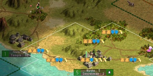 Japan leads the Iroquois by masonry and horseback riding. With a reasonable sword production, and a clear need for more cities, Japan wishes to unsheath the blades.
