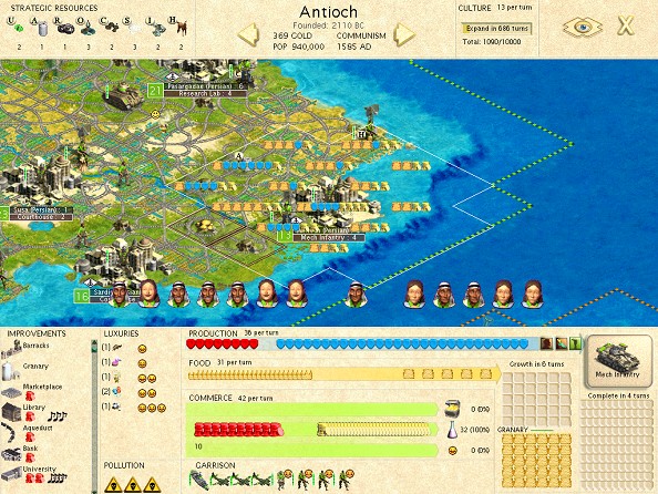 My concern is that I'm not convinced that the AI uses MP efficiently to alleviate unhappiness. I think it uses whatever units happen to be available, but will not "consciously" take advantage of an increased MP level -- in other words, the number of units garrisoned in each city is determined based primarily (if not totally) on other factors. A screenshot below shows a Persian city from my test game (modded with up to 12 MP) -- despite numerous units "patrolling" the homeland, far from any fighting (which is all on another landmass), only four units are garrisoned in Tarsus, which is using 3 entertainers. Three additional units would eliminate the need for entertainers, and well more than three additional units are quite readily available.Originally posted by Dominae