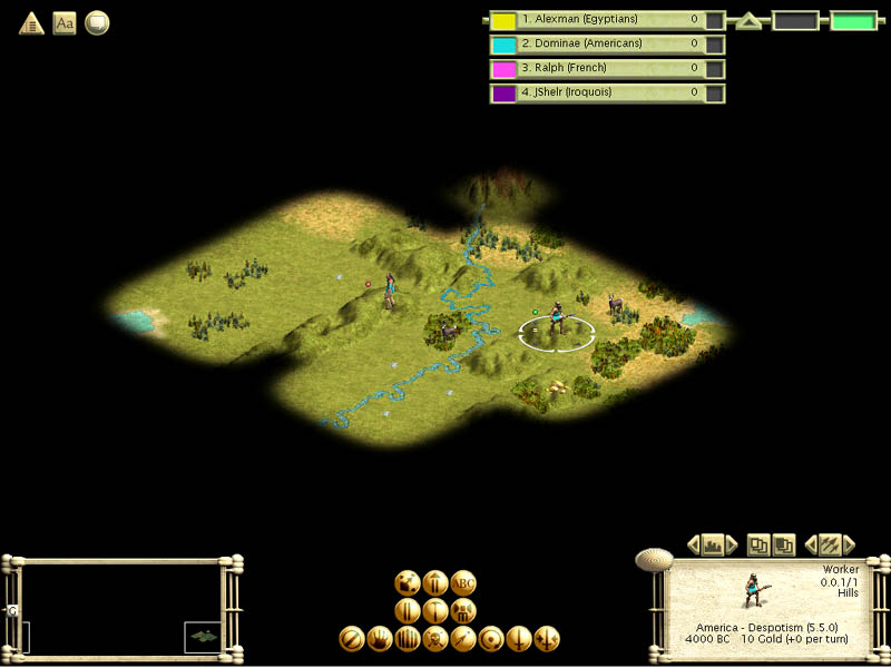 More by chance than by design, the American people were segregated from the rest of the world. With my Scout I learned this rather quickly, as my island was quite small (yet still large enough to be competitive, or so I believe). It turned out to be a mixed blessing that I chose Expansionist: although my Scout only popped 1 hut for a measly 25 gold, I learned very quickly that I could focus on being a uber-builder with no fear of opposition.