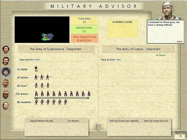 This decision could turn out to ruin my game if I don't get any leaders from upcoming my wars against Japan and Egypt. Without a palace on that continent, there would be no way of keeping up with Babylon.