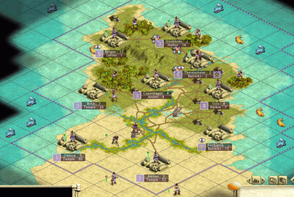 1700BC - A new band of colonists sets out from London. Quickly gaining renown as a center for highly experienced colonists, London continues recruiting from its willing populace. The colonists venture off towards the desert to the south in search of a suitable site to found their city. Canterbury has completed its second military unit. Training begins on workers for the empire while the military unit seeks to meet up with the colonists from London to provide support and protection during their journey.