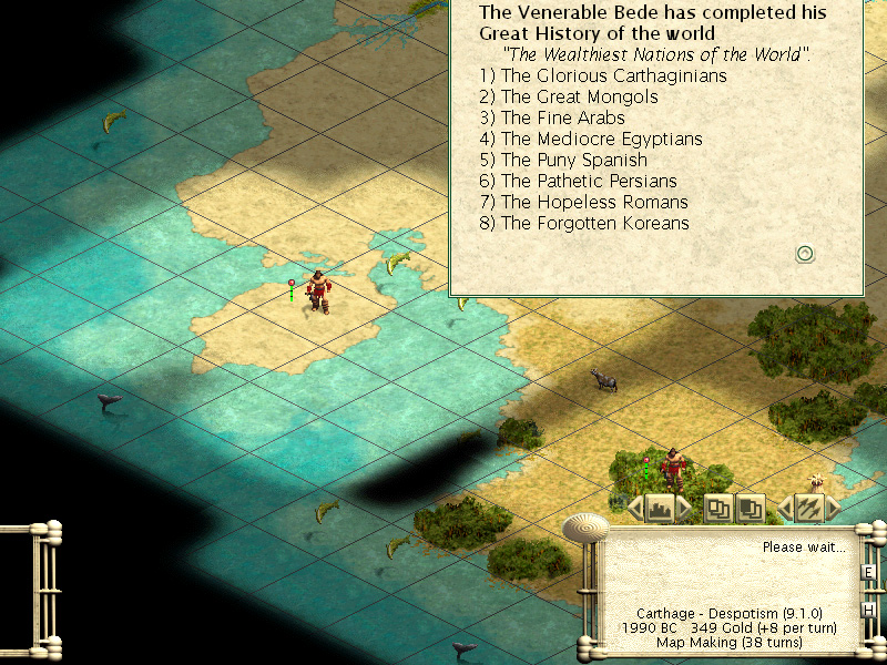 1990BC: Carthage is the wealthiest civ! 349 shiny GP! (see screenshot below).