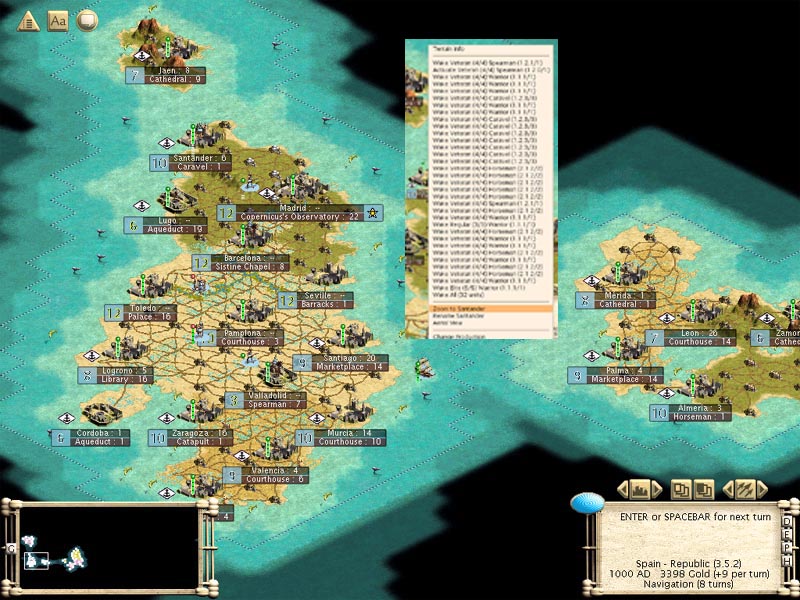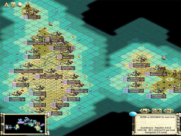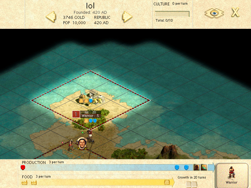 That means no swordsman, no pikemen, and even better...no riders. Until someone gets to navigation or magnetism and trades with them, they will be a military pushover (relatively speaking). Dreams of controlling what could possibly be the entire incense trade danced in my head and I decided that China would be my first conquest...as soon as I got Navigation. Other than the two galleys that discovered the three civs I know, not a single one lasted more than one turn outside the coast. I lost over 20 galleys and decided that more exploration right away wasn't going to be too viable.
