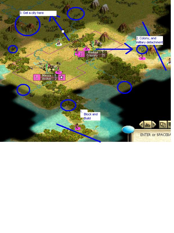 3. Get a city by that gold. Gotta finance that big army ya know. Plus it looks like a sweet city spot.
