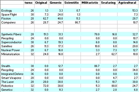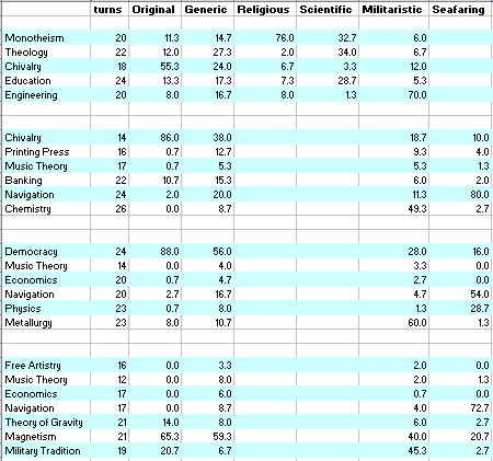 Given these observations, I think it's not a good idea to give a tech a low or high priority to all civs using flavors, but it is still possible to use flavors to take advantage of civ traits.