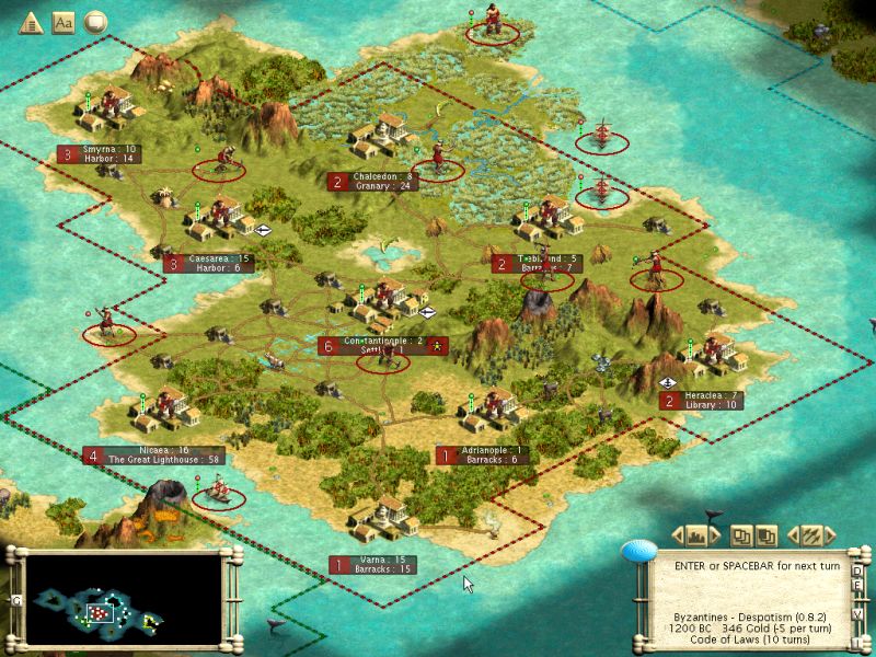 1450BC: Continuing to drain the northern swamps, I found Chalcedon on 3rd square north of Constatinople, next to the marsh fishies.