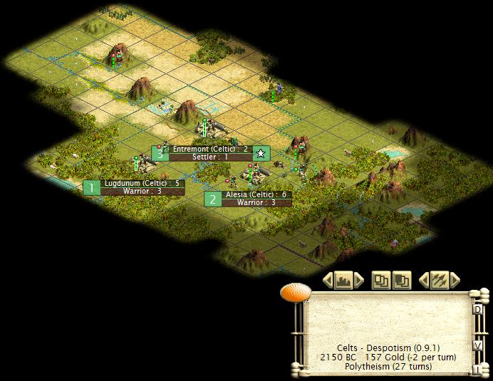 2230 - Lugdunum is founded on the Western coast, with two squares of spice and one square of cattle just outisde the current city radius.