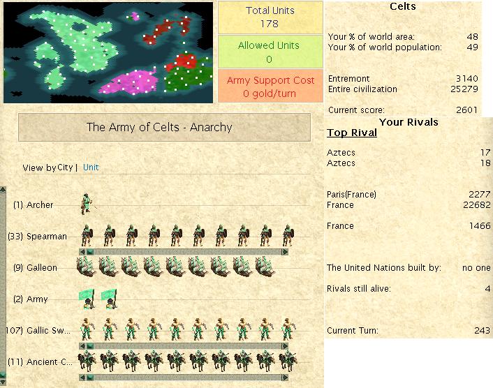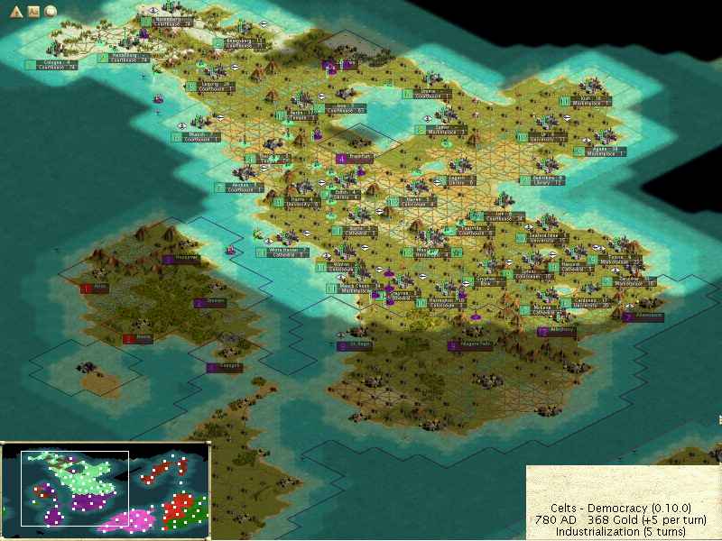 We sign a (temporary) peace with the Iroquois while we get some settlers and better garrsions over to the north isle. And in 1320 with the discovery of magnetism, the Celts enter the Industrial age