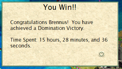 This was my first win at Emperor level, and my first domination win in a good long while (I'm a builder, what can I say