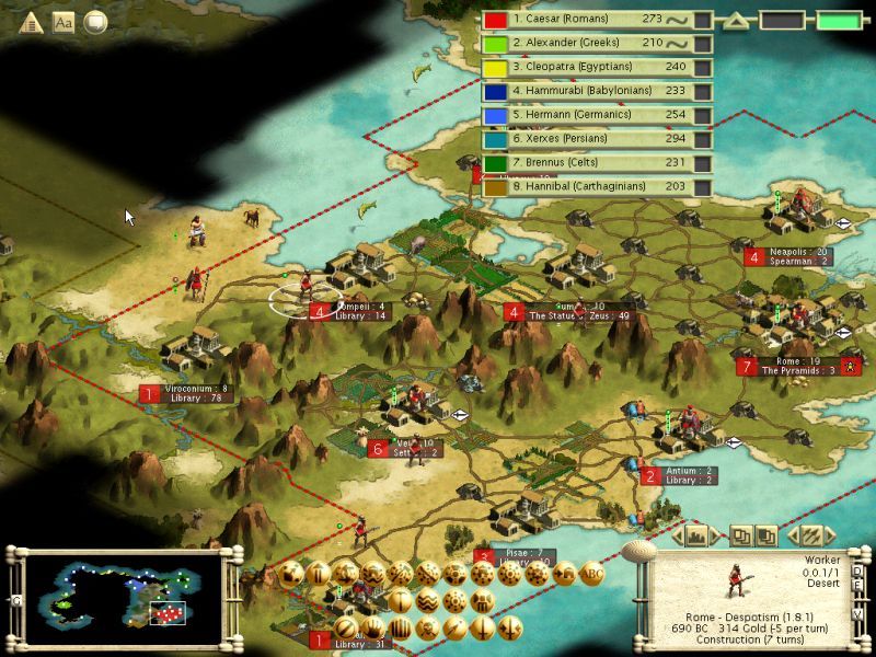 We made it to 690BC, so I'll post all that happened here......not much, since we're both the peaceful friendly tpyes, not like Dom and Krill