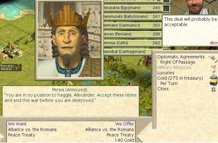 Thanks for small gains. The nefarious and greedy, but, unfortunately for us, ironless Persians just switched sides and are at war with Rome.