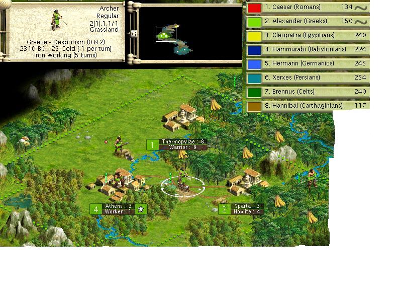 er, one reg hoplite, one vet archer, and one 1 pop town to Persia, whom I declared war on my self